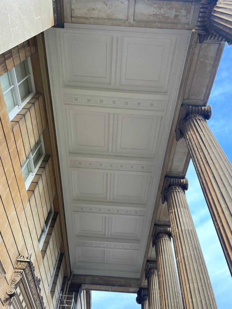 The ceiling rose painted in an antique gold finish and the main window renovated and picked out In sovereign gold.